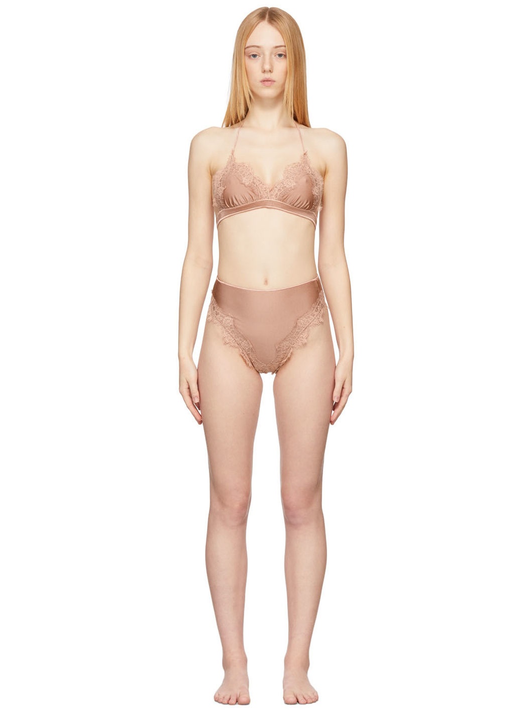 Stretch nylon jersey bikini top in pink featuring tonal lace trim throughout. · Self-tie fastening · Unlined Stretch nylon jersey bikini bottoms in pink featuring tonal lace trim throughout. · High-rise · Partially lined Supplier color: Champagne rose Body: 85% polyamide, 15% elastane. Lining: 80% cotton, 20% nylon. Made in Italy 221387F105008