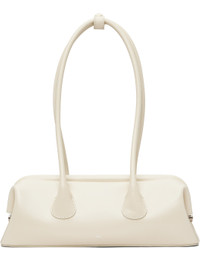 Buffed leather shoulder bag. · Press-stud tab at fixed shoulder straps · Logo stamp at face · Hinged closure · Patch pocket at interior · Cotton canvas lining · H4.25" x W12.25" x D2.75" Supplier color: Cream Leather. Made in South Korea 261811F048005