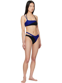 Stretch nylon jersey and French terry bikini top. · Layered and asymmetrical construction · Modified scoop neck · Self-tie halter strap · Single adjustable spaghetti shoulder strap · Unlined Supplier color: Black/Blue 84% polyamide, 16% elastane. Made in Greece 251016F105001