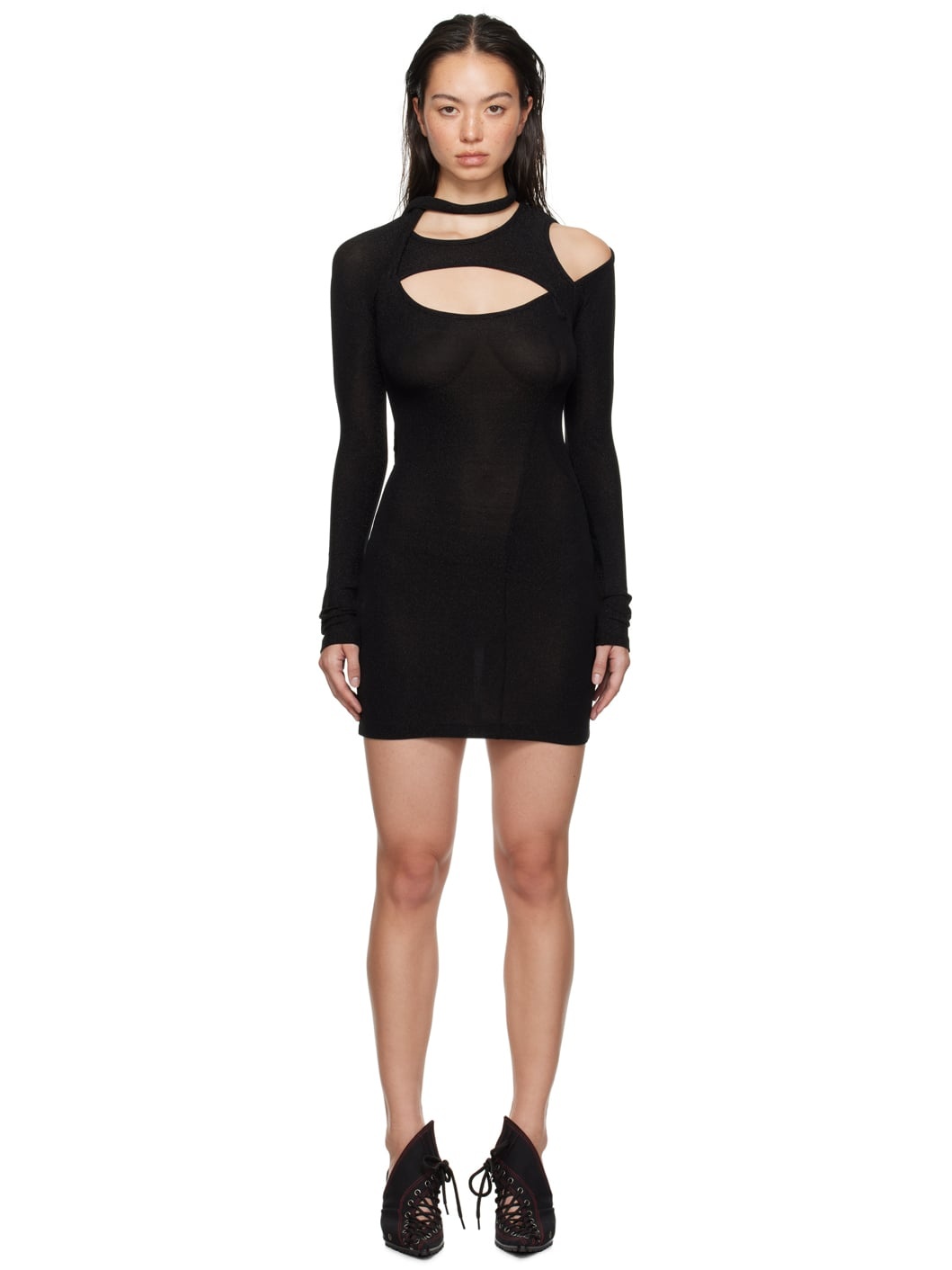 Stretch nylon jersey dress. Metallic thread detailing throughout. · Crewneck · Cutouts at front and shoulder · Padded wraparound self-tie strap at bust Supplier color: Black shine 74% polyamide, 23% metallic fibres, 3% elastane. Made in Greece 242016F052001