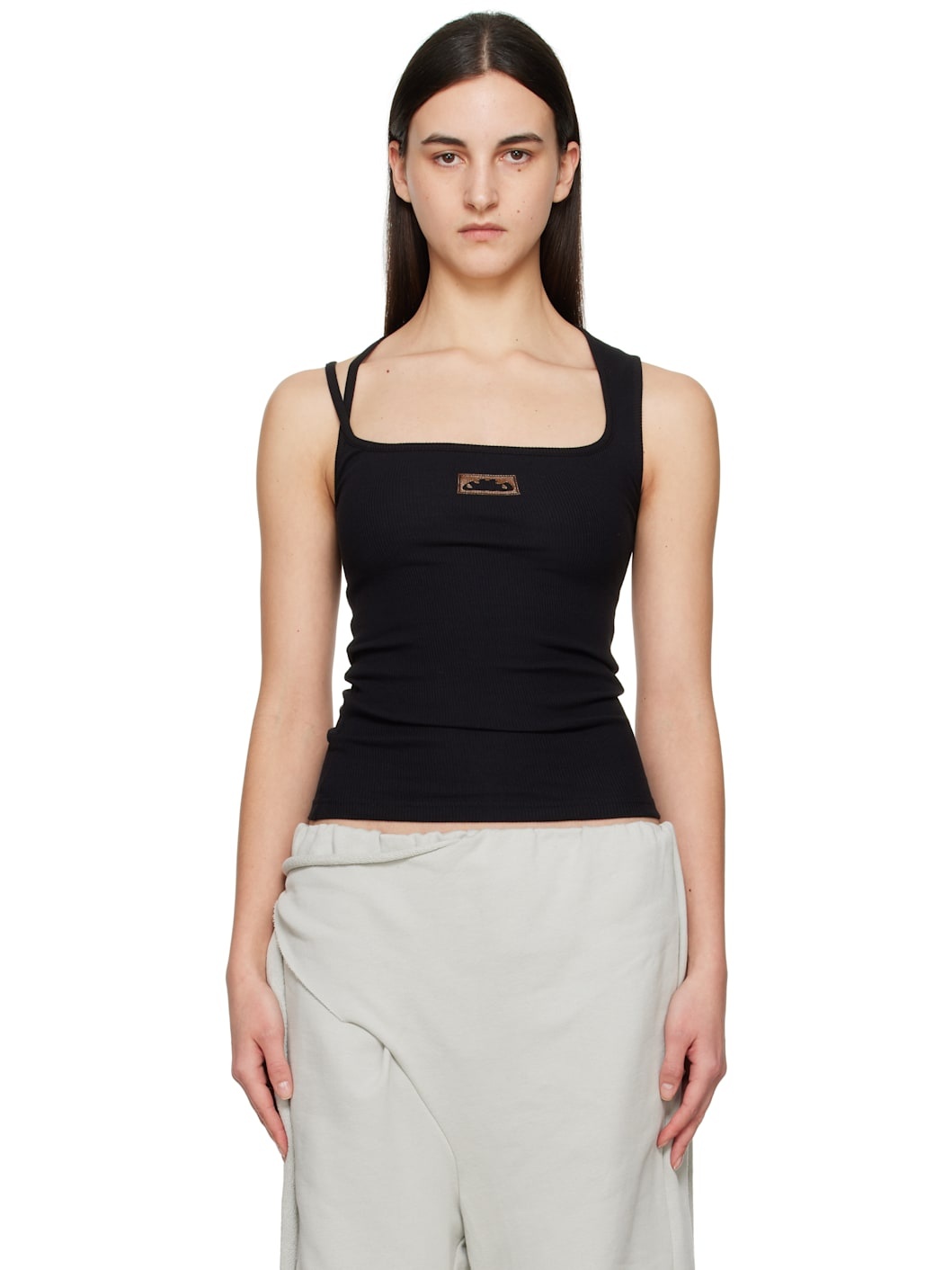 Stretch organic cotton ribbed jersey tank top. · Square neck · Logo at chest · Cutout at shoulder Supplier color: Black 97% organic cotton, 3% elastane. Made in Greece 251016F111006