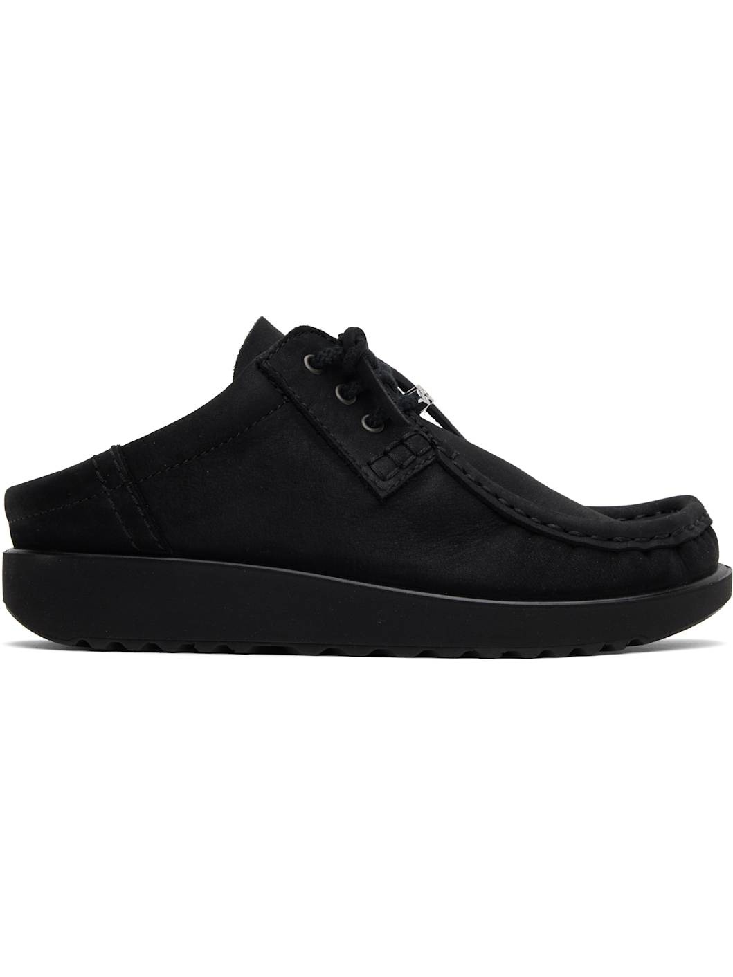 Nubuck mules in black. · Moc toe · Logo hardware at lace-up closure · Logo stamp at tongue · Padded collar · Foam rubber midsole · Treaded rubber sole Part of the Ottolinger x ECCO.kollektive collaboration. Supplier color: Black Upper: leather. Sole: rubber. Made in Portugal 251016M231000