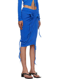 Rib-knit stretch organic cotton midi skirt. · Elasticized waistband · Button hardware and gathering at front · Straps with button fastenings at front · Extended trim at hem Supplier color: Blue 97% organic cotton, 3% elastane. Made in Greece 252016F092000