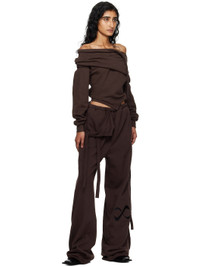 Organic cotton fleece sweatpants. · Elasticized waistband · Two-pocket styling · Raw edge at cuffs · Self-tie fastening at outseams Supplier color: Dark brown wash 100% organic cotton. Made in Greece 252016F087001