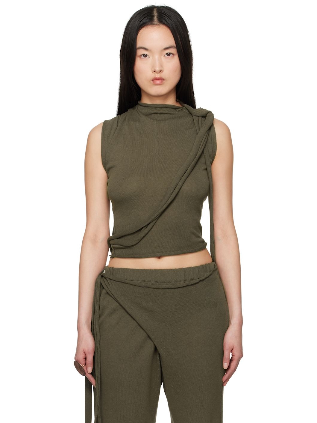 Knit viscose-blend tank top. Rolled raw edges throughout. · Mock neck · Dart at front · Extended trim at cropped hem and armscyes · Concealed press-stud closure at shoulder Supplier color: Green 60% viscose, 20% recycled viscose, 20% linen. Made in Greece 251016F111004