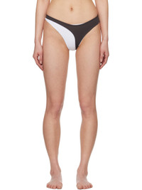 Stretch nylon jersey and French terry bikini bottom. · Layered and asymmetrical construction · Elasticized waistband · Cutout at side · Fully lined Supplier color: White/Brown 84% polyamide, 16% elastane. Made in Greece 251016F105002