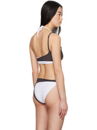 Stretch nylon jersey and French terry bikini top. · Layered and asymmetrical construction · Modified scoop neck · Self-tie halter strap · Single adjustable spaghetti shoulder strap · Unlined Supplier color: White-brown 84% polyamide, 16% elastane. Made in Greece 251016F105000