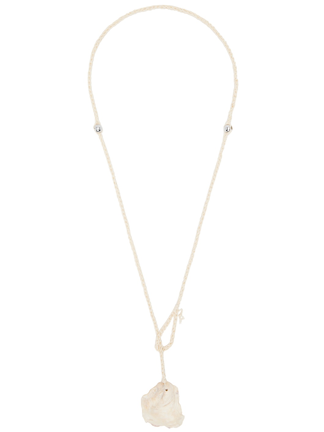 Handcrafted braided cotton cord necklace in beige. · Shell pendant · Pull-through fastening · L26" Supplier color: Fly shell Textile, shell. Made in Portugal 251803M145006