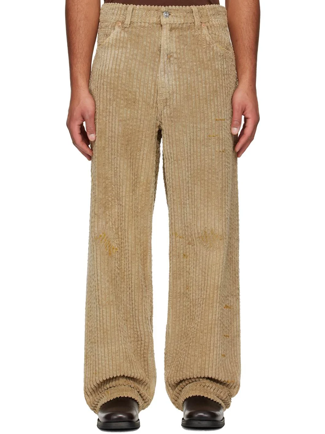 Pigment-dyed cotton corduroy trousers. · Hand-distressing throughout · Wide-leg · High-rise · Belt loops · Five-pocket styling · Zip fly · Rubberized logo patch at back waistband · Logo-engraved silver- and copper-tone hardware Each item is unique. Please note coloration may vary. Supplier color: Tired teddy wash 100% cotton. Made in Portugal 252803M191000