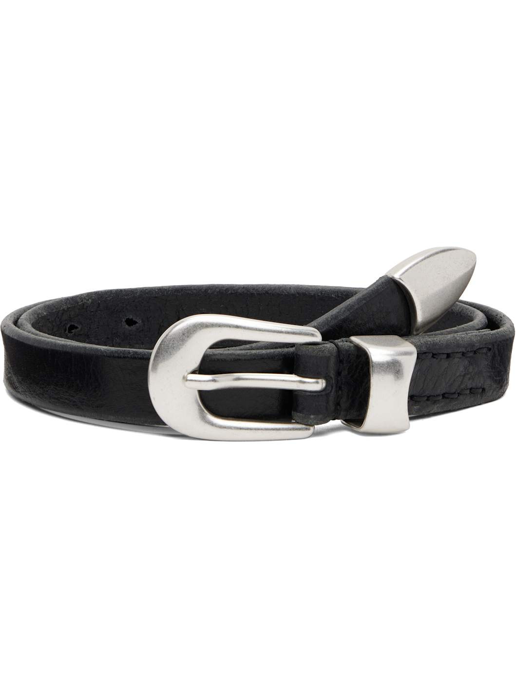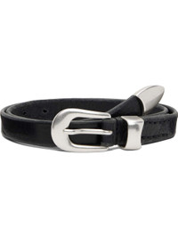 Grained calfskin belt. · Silver-tone keeper loop at length · Hardware at end · Pin-buckle fastening · W0.75" Supplier color: Black leather Calfskin. Made in Portugal 252803M131016