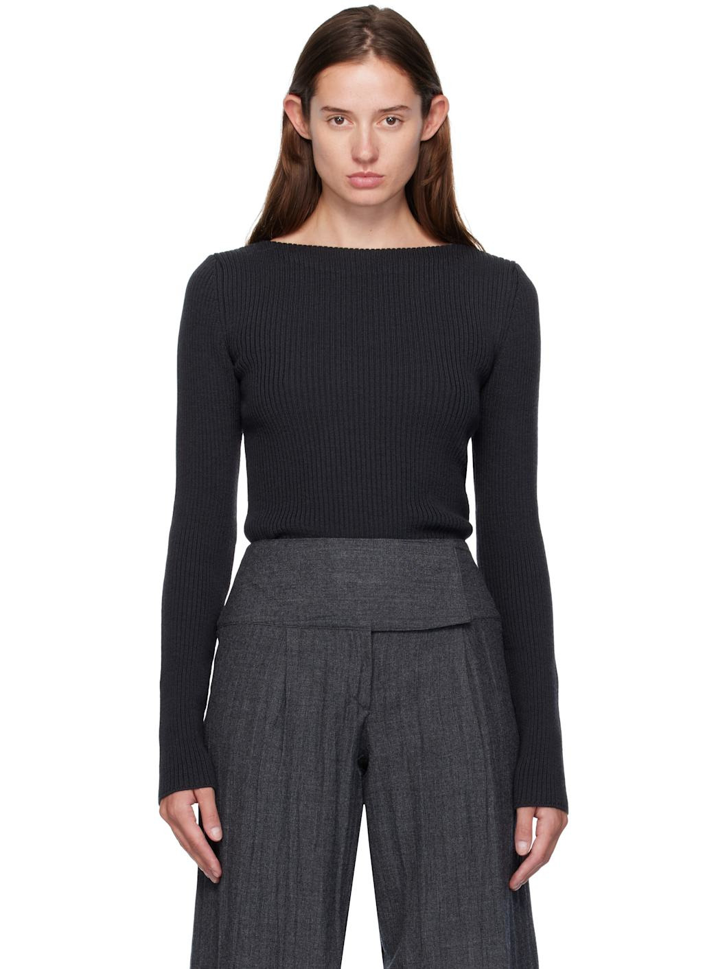 Rib-knit merino wool sweater. Hand-finished boatneck. Supplier color: Off black rustic merino 100% merino wool. Made in Portugal 252803F096000