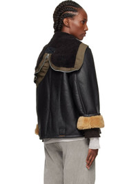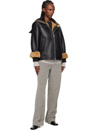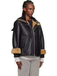Grained lambskin jacket. · Zip vent at hood · Throat guard at stand collar · Two-way zip closure · Welt pockets and belt loops at waist · Inset rib-knit cuffs · Cattle horn hardware Supplier color: Natural aviator shearling Body: 100% lambskin. Trim 1: 100% sheepskin. Trim 2: 100% cotton. Made in Portugal 252803F062000