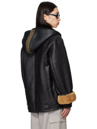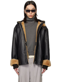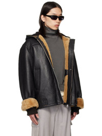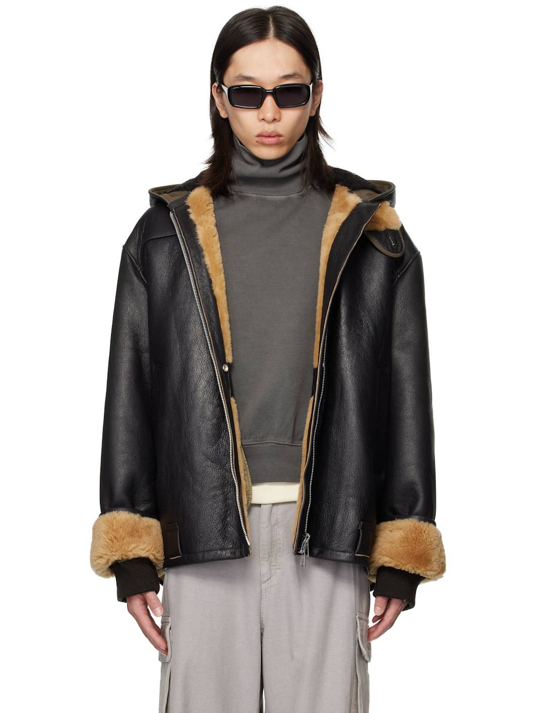 Shearling jacket. · Zip vent with button fastening at hood · Throat guard at stand collar · Two-way Lampo zip closure · Welt pockets at waist · Belt loops at hem · Inset rib-knit cuffs · Cattle horn hardware Supplier color: Natural aviator shearling Body: 100% lambskin. Trim 1: 100% sheepskin. Trim 2: 100% cotton. Made in Portugal 252803M181002