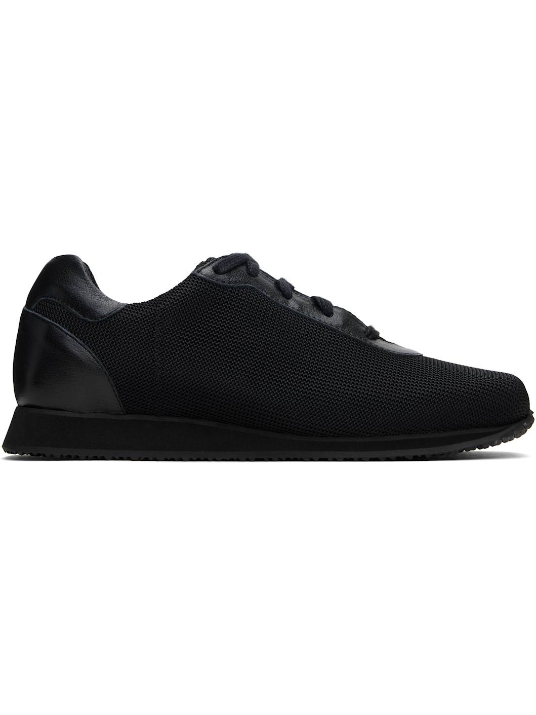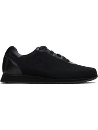 Low-top mesh sneakers in black. · Grained leather trim throughout · Square toe · Lace-up closure · Logo rivet at padded tongue · Padded collar · Mesh lining · Treaded Vibram® rubber sole Supplier color: Blackout nylon Upper: textile, leather. Sole: rubber. Made in Portugal 251803F128001