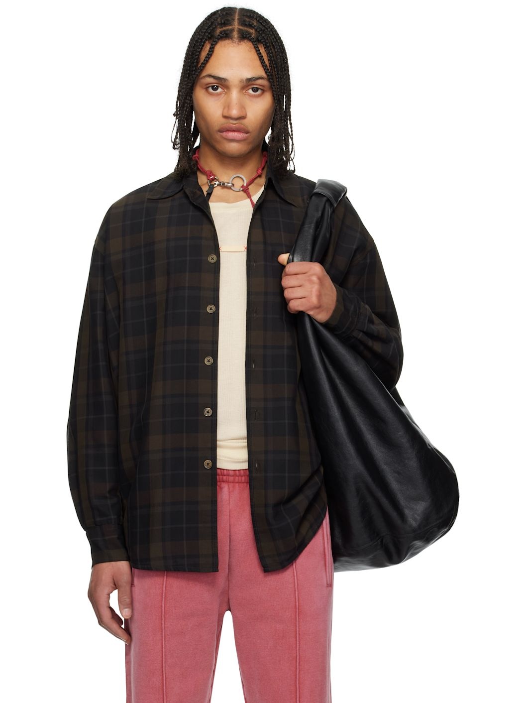 Plain-woven polyester- and cotton-blend shirt. Check pattern throughout. · Spread collar · Button closure · Patch pocket at chest · Shirttail hem · Dropped shoulders · Buttoned barrel cuffs · Box pleat at yoke · Fully lined · Mother-of-pearl hardware Supplier color: Black sheer shadow check Body: 55% polyester, 45% cotton. Lining: 100% cotton. Made in Portugal 251803M192024