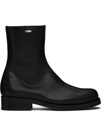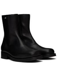 Ankle-high buffed calfskin leather boots in black. · Logo hardware at outer side · Zip closure at inner side · Grained leather lining · Stacked Kilger leather block heel and midsole · Treaded Vibram® rubber sole · Heel: H1.5" Supplier color: Black Upper: calfskin. Sole: rubber. Made in Portugal 251803M228006