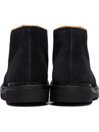 Ankle-high vegetable-tanned suede boots. · Lace-up closure · Logo hardware at tongue · Buffed leather lining · Topstitching at welt · Foam rubber midsole · Treaded Vibram® rubber sole Supplier color: Dim black velour suede Upper: leather. Sole: rubber. Made in Portugal 252803M255004