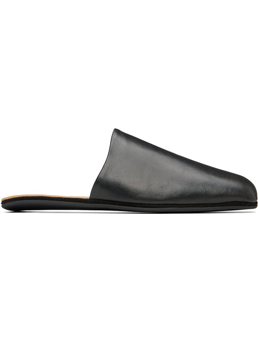 Buffed leather slippers. · Square toe · Logo embossed at padded footbed · Rubber sole Supplier color: Sombre satin bovine Upper: leather. Sole: rubber. Made in Portugal 252803F121002