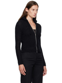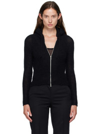 Brushed rib-knit alpaca-blend cardigan. · Drawstring at hood · Two-way zip closure Supplier color: Black 55% alpaca, 30% polyamide, 15% wool. Made in Portugal 252803F097002