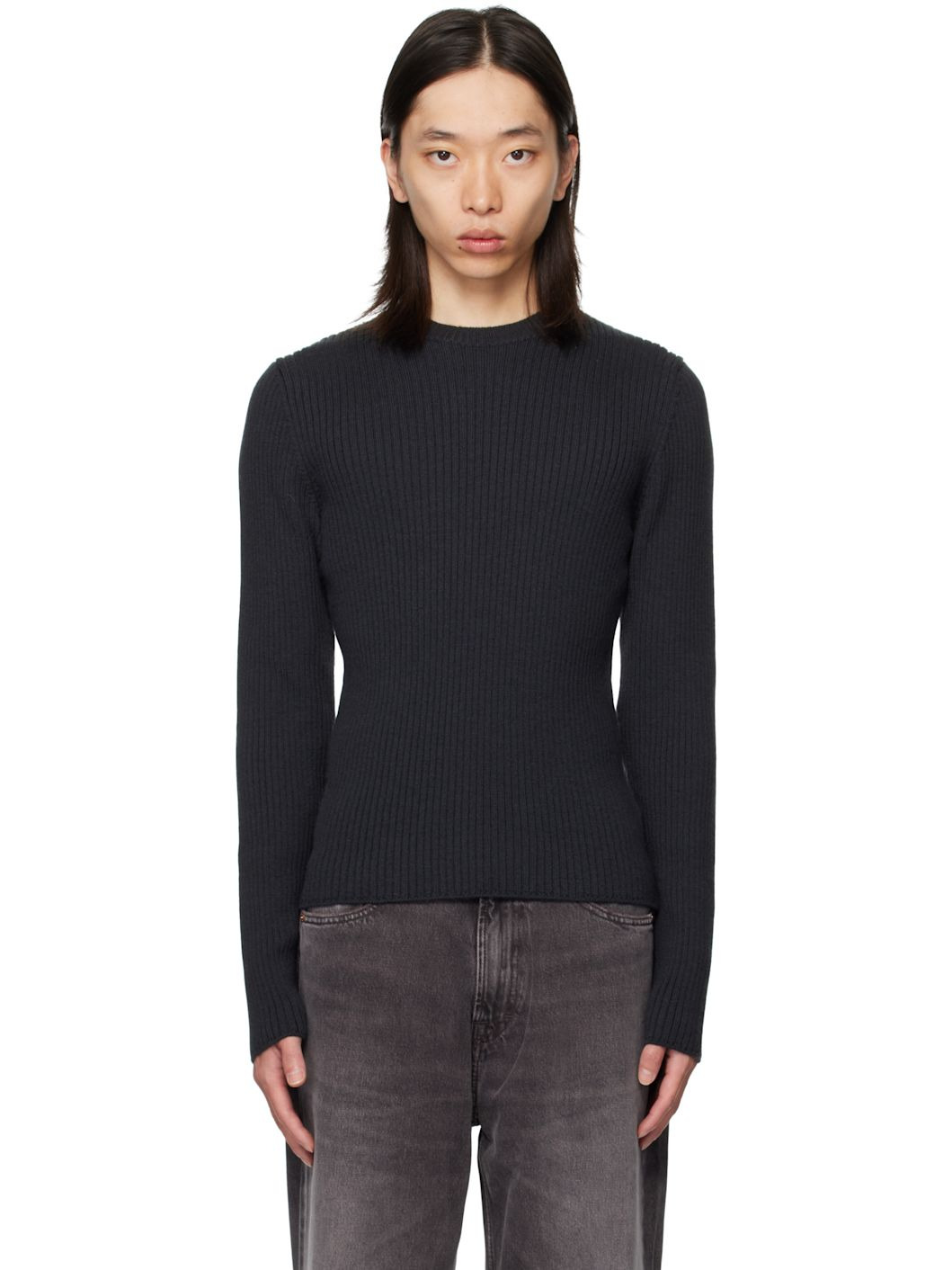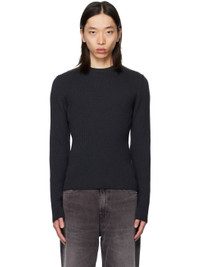 Rib-knit merino wool sweater. · Crewneck · Overlock stitching at hem and cuffs Supplier color: Off black rustic merino 100% merino wool. Made in Portugal 252803M201007