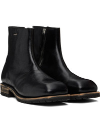 Ankle-high grained leather boots in black. · Square toe · Logo hardware at outer side · Zip closure at inner side · Buffed leather lining · Distressing at stacked leather midsole and heel · Treaded Vibram® rubber sole · Heel: H1.25" Supplier color: Deep black leather Upper: leather. Sole: rubber. Made in Portugal 251803M228002