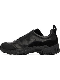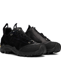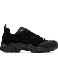 Low-top suede and grained leather sneakers. · Offset lace-up closure · Logo hardware at tongue · Pull-loop at heel collar · Treaded Vibram® rubber sole Supplier color: Stealth black leather Upper: leather. Sole: rubber. Made in Portugal 252803F128005
