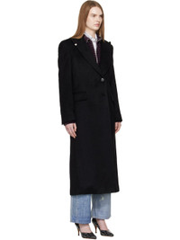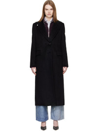 Brushed mohair- and wool-blend coat. · Tab-slot fastening at peaked lapel · Button closure · Welt pocket at chest · Flap pockets at waist · Surgeons cuffs · Central vent at back hem · Welt pockets at interior · Full satin lining Supplier color: Black Hairy Wool Body: 50% mohair, 30% wool, 20% polyamide. Lining: 100% viscose. Trim 1: 100% cotton. Trim 2: 100% cattle horn. Made in Portugal 261803F059003