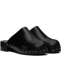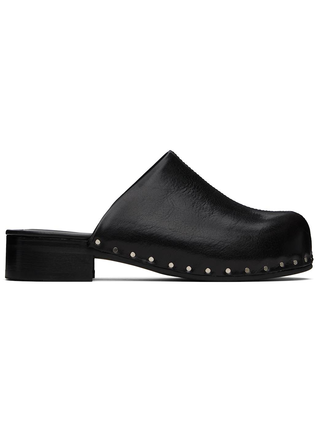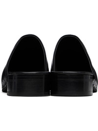 Grained leather slip-on loafers in black. · Central seam at vamp · Buffed leather lining · Rivets at welt · Stacked leather block heel with rubber injection · Treaded Vibram® rubber sole · Heel: H1.5" Supplier color: Black supple cow hide Upper: leather. Sole: rubber. Made in Portugal 251803F121007