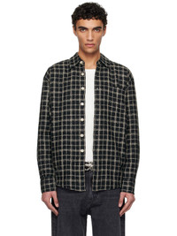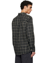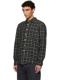 Basket-woven cotton- and linen-blend shirt. Check pattern throughout. · Spread collar · Button closure · Patch pocket at chest · Shirttail hem · Pleated single-button barrel cuffs · Box pleat at back yoke · Mother-of-pearl hardware Supplier color: Black fishnet cloth 60% cotton, 40% linen. Made in Portugal 251803M192039