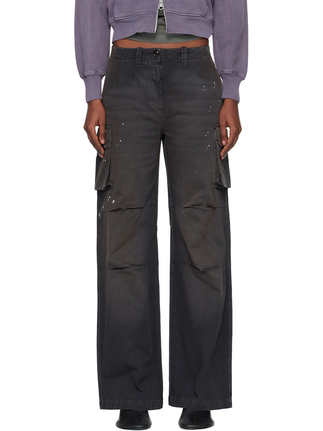 Pigment-overdyed cotton herringbone cargo pants. · Fading and paint splatter throughout · Straight-leg · Belt loops · Three-pocket styling · Zip fly · Darts at knees · Cargo pocket at outseams Supplier color: Nebula Wash Jungle Herringbone 100% cotton. Made in Portugal 261803F087003