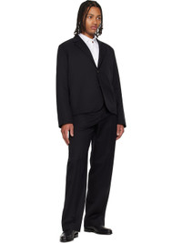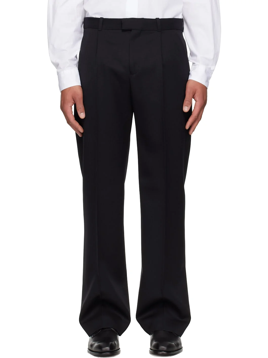 Virgin wool gabardine trousers. · Bootcut · Low-rise · Belt loops · Four-pocket styling · Zip fly · Pleats at front · Creased legs Supplier color: Coarse black gabardine Body: 100% virgin wool. Trim: 100% cotton. Made in Portugal 252803M191004