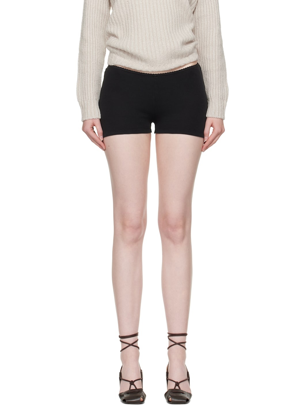 Piece-dyed organic cotton ribbed jersey shorts. · Slim-fit · Scalloped edge at elasticized waistband Supplier color: Washed black athletic rib 100% cotton. Made in Portugal 251803F088004