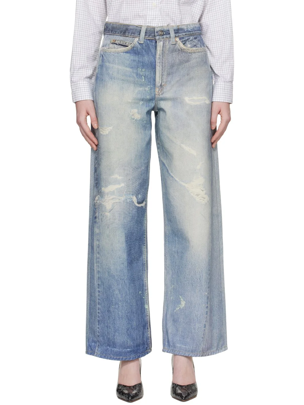 Non-stretch denim jeans. · Trompe-l'oeil fading and distressing printed throughout · High-rise · Straight-leg · Belt loops · Zip fly · Five-pocket styling · Logo patch at back waistband · Contrast stitching in beige Supplier color: Digital Denim Print 100% cotton. Made in Portugal 261803F069011