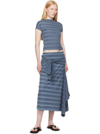 Cotton-blend jersey midi skirt. Fading and stripes throughout. · Alternate function as dress · Self-tie straps at front · Asymmetric hem Supplier color: 70s jersey wave plisse Body: 50% cotton, 50% polyester. Trim: 100% cotton. Made in Portugal 251803F092000