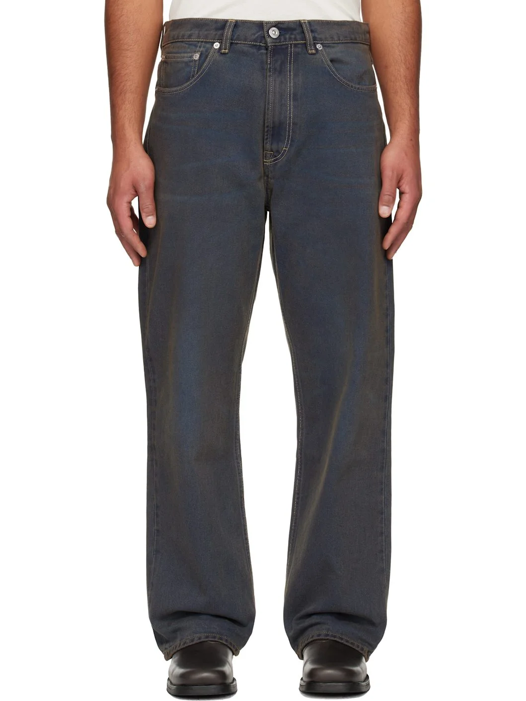 Non-stretch denim jeans. · Fading and whiskering throughout · Loose-fit and straight-leg · Belt loops · Five-pocket styling · Zip fly · Rubberized logo patch at back waistband · Logo-engraved silver-tone hardware Supplier color: Dusty phantom 100% cotton. Made in Portugal 252803M186006