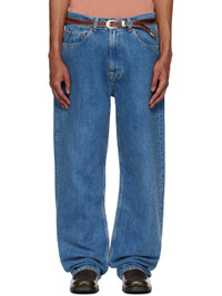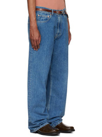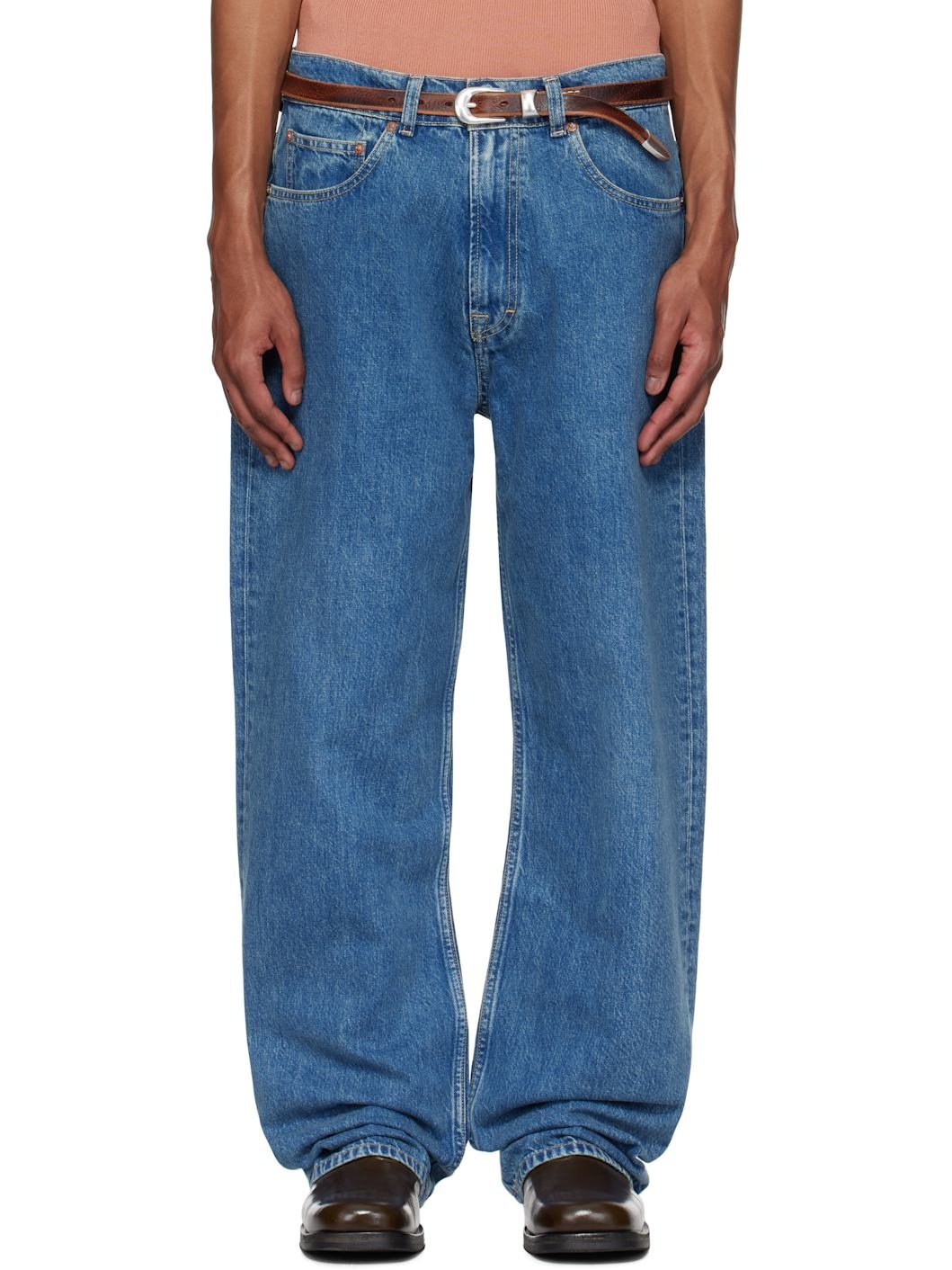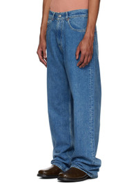 Non-stretch denim jeans. Fading throughout. · Loose-fit and straight-leg · Belt loops · Five-pocket styling · Zip fly · PVC logo patch at back waistband · Logo-engraved silver-tone hardware · Contrast stitching in beige Supplier color: Blue tech wash denim 100% cotton. Made in Portugal 251803M186009