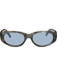 Handcrafted oval Mazzucchelli acetate-frame sunglasses. · Semi-sheer · Blue-tinted Carl Zeiss lenses, cat. 1 · Core wire at temples · Hinged leather case included Supplier color: Dotonbori Havana Acetate. Made in Portugal 252803F005001
