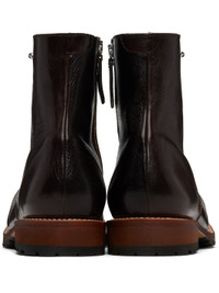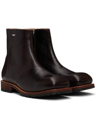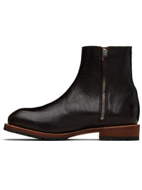 Ankle-high grained leather boots. · Square toe · Logo hardware at outer side · Lampo zip closure at inner side · Buffed leather lining · Stacked leather heel and midsole · Lugged Vibram® rubber sole · Heel: H1.25" Supplier color: Deep Americano Upper: leather. Sole: rubber. Made in Portugal 252803M228002