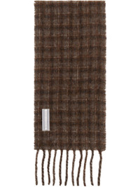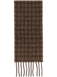 Rectangular alpaca- and wool-blend flannel scarf. · Check pattern throughout · Logo patch at face · Fringed detailing at ends · L74" x W10" Supplier color: Dorf check fuzzy alpaca 60% alpaca, 25% wool, 15% polyamide. Made in Italy 252803F028008