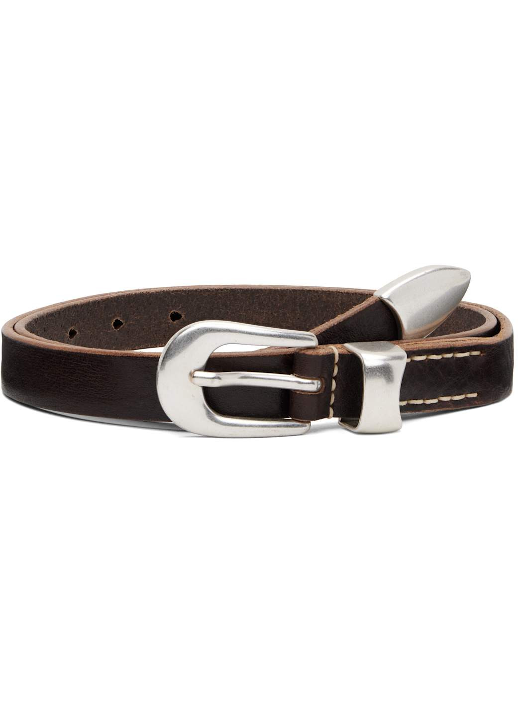 Buffed leather belt. · Pin-buckle fastening · Silver-tone hardware · Contrast stitching in beige · W0.75" Supplier color: Brown leather Leather. Made in Portugal 252803M131015