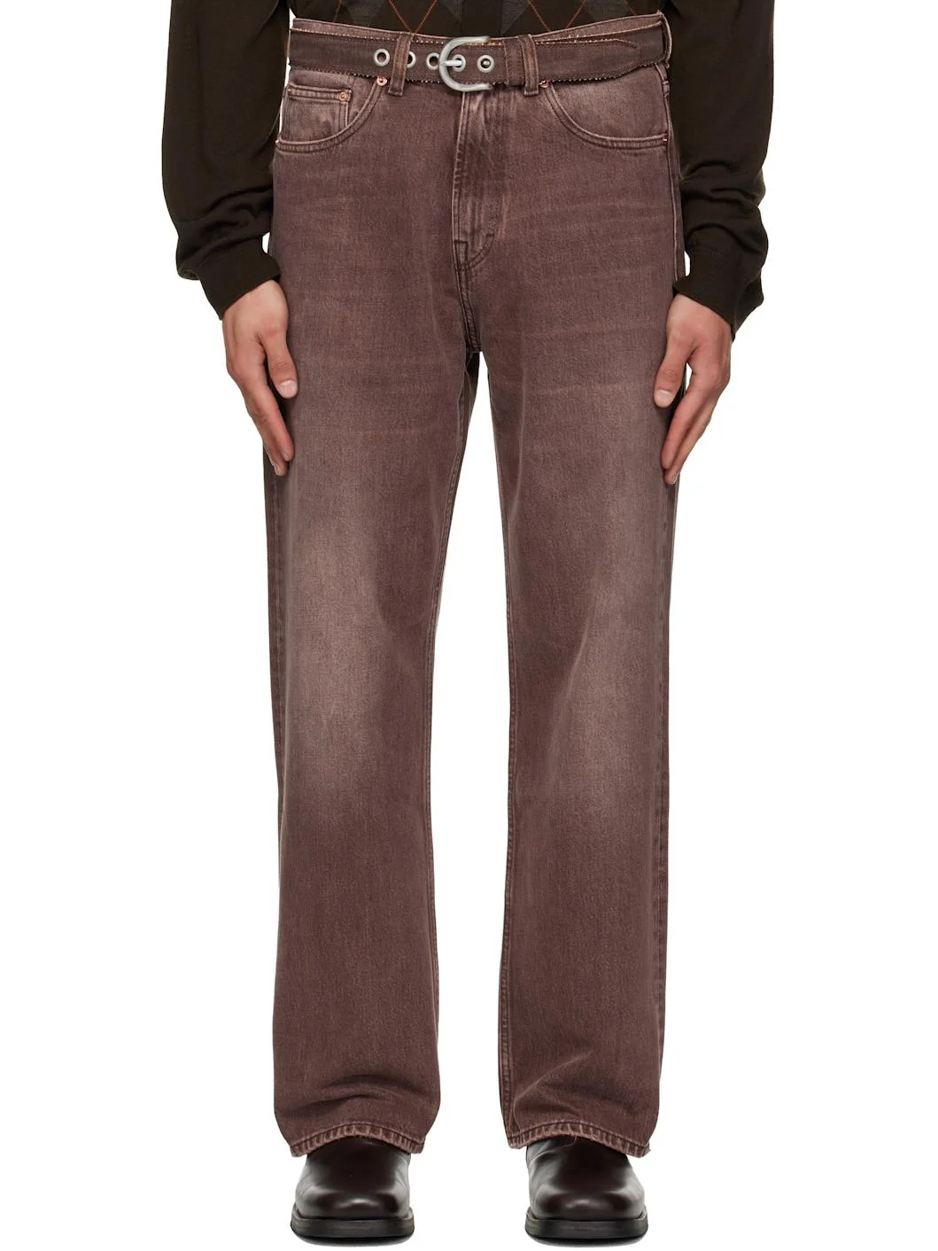 Pigment-dyed non-stretch denim jeans. · Loose-fit, straight-leg · Fading, whiskering, and subtle distressing throughout · Belt loops · Five-pocket styling · YKK® zip fly · Rubberized logo patch at back waistband · Logo-engraved bronze-tone hardware Supplier color: Overdyed choco melon 100% cotton. Made in Portugal 261803M186005