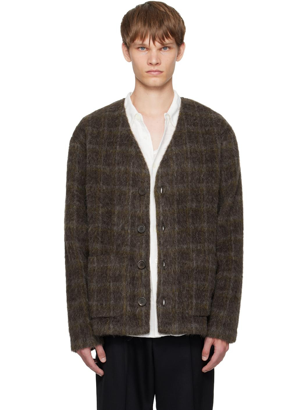 Brushed wool-blend felt cardigan. · Y-neck · Button closure · Patch pockets at waist · Mother-of-pearl hardware Supplier color: Dorf check hairy Body: 35% wool, 26% polyester, 22% acrylic, 11% alpaca, 4% polyamide, 2% other fibers. Trim: 100% mother of pearl. Made in Portugal 252803M200008