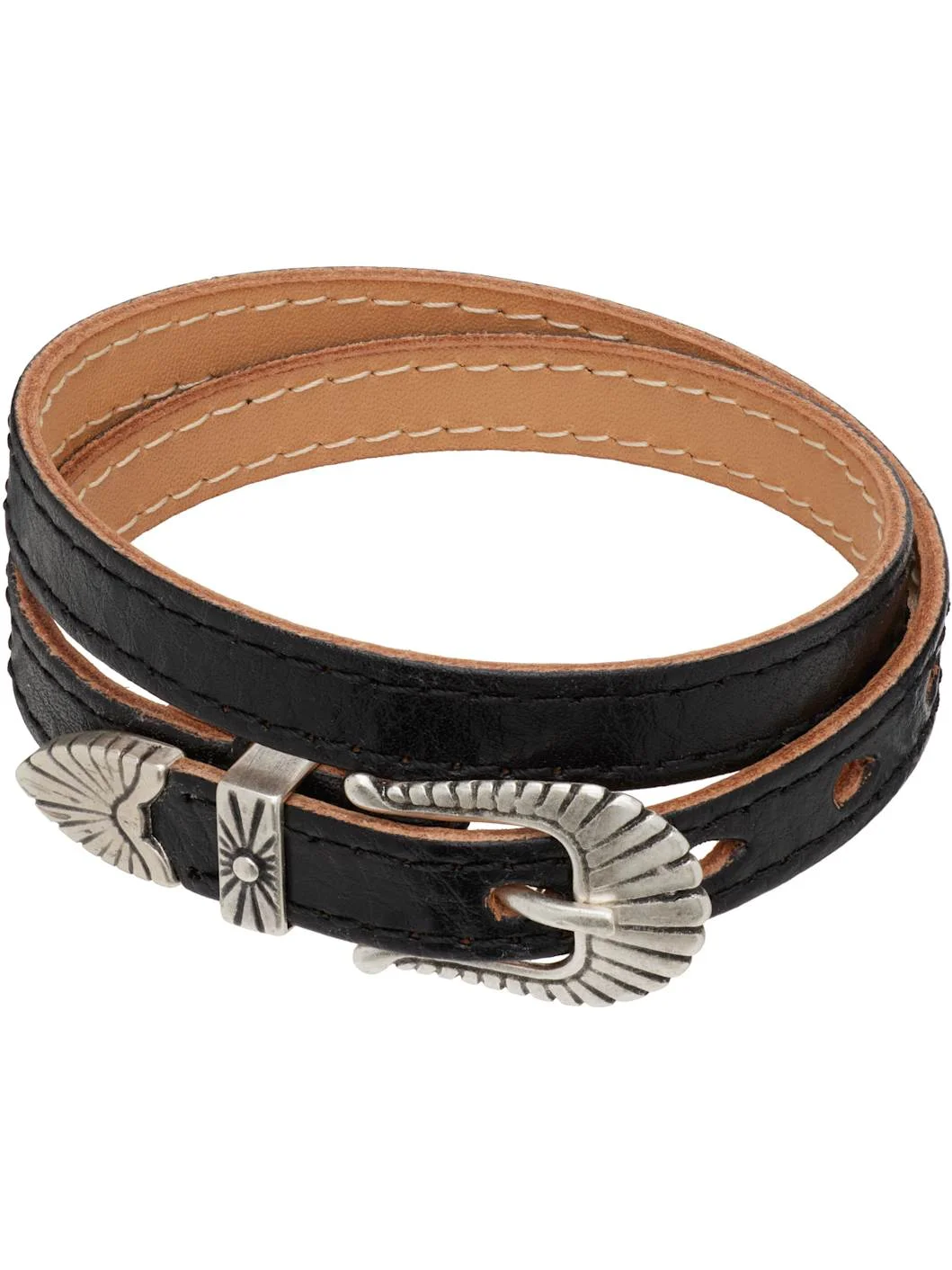 Wraparound grained leather bracelet in black. · Adjustable pin-buckle fastening · Engraved silver-tone hardware · L17" Supplier color: Deep black leather Leather. Made in Portugal 261803F020002