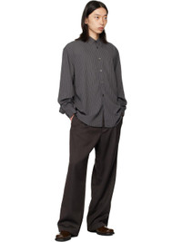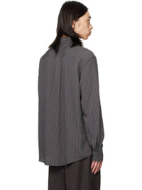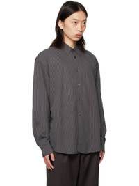 Plain-woven viscose-blend shirt. · Stripes throughout · Spread collar · Button closure · Shirttail hem · Buttoned barrel cuffs · Box pleat at back yoke · Mother-of-pearl hardware Supplier color: Iron stripe ceremony viscose 88% viscose, 12% polyamide. Made in Portugal 252803M192011