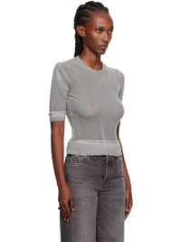 Knit merino wool sweater. · Raw-edge trim and discoloration throughout · Rib-knit round neck, hem, and cuffs Supplier color: Grey Spray Dye Cherub Wool 100% merino wool. Made in Portugal 252803F110006