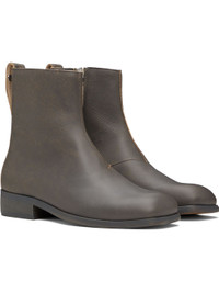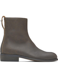 Ankle-high grained leather boots in gray. · Fading throughout · Square toe · Zip closure at inner side · Pull-loop at heel tab · Silver-tone logo hardware at pull-loop · Stacked leather heel with rubber injection · Leather sole · Heel: H1.5" Supplier color: Vintage clawed stone