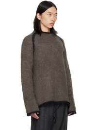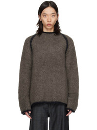 Knit wool- and mohair-blend sweater. · Rolled edge at crewneck, hem, and cuffs · Raglan sleeves Supplier color: Steel mohair Body: 59% wool, 41% mohair. Trim: 70% kid mohair, 30% silk. Made in Portugal 252803M201004