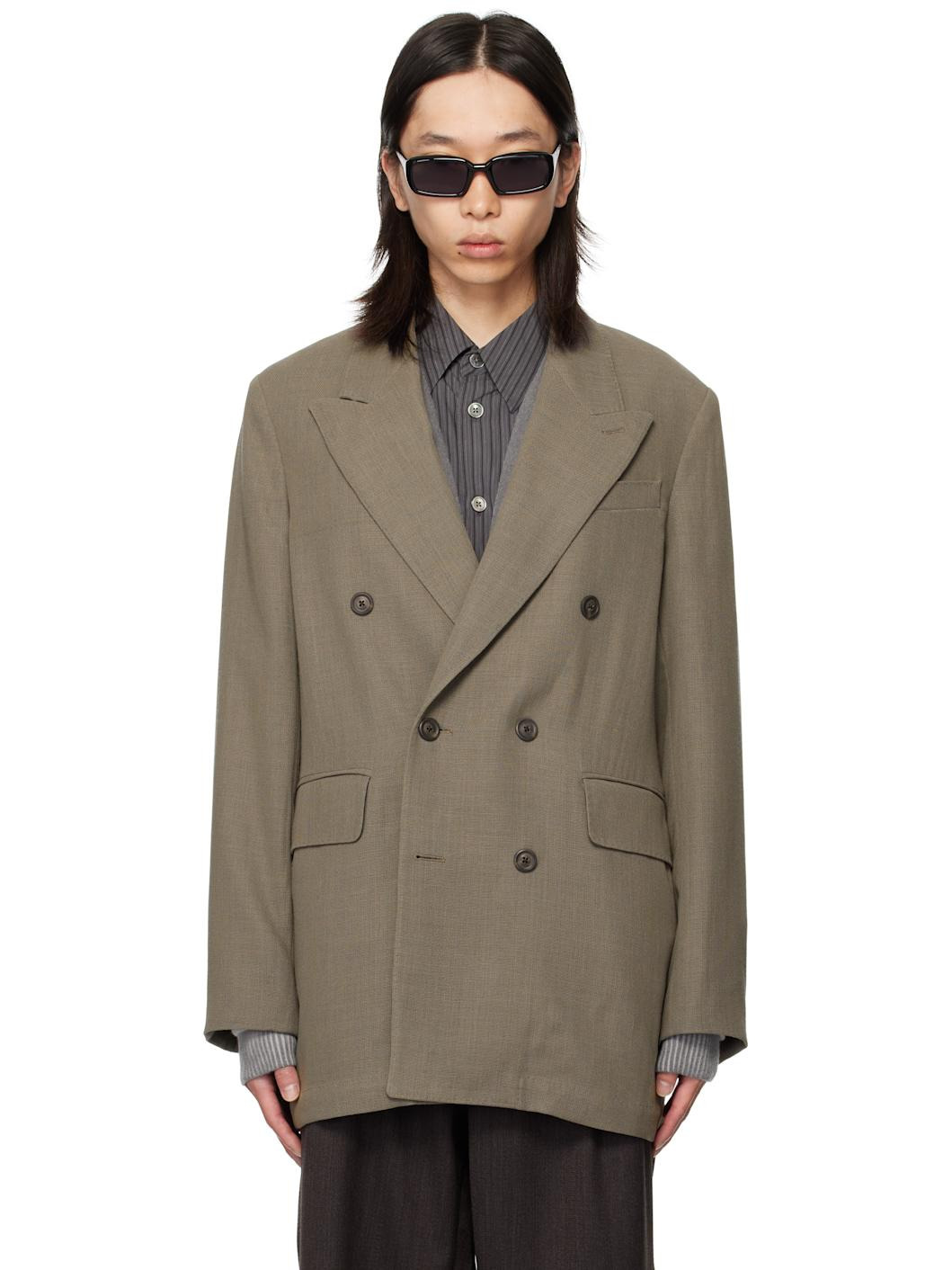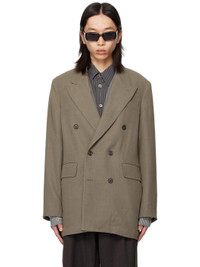 Virgin wool-blend hopsack blazer. · Peaked lapel · Double-breasted button closure · Welt pocket at chest · Flap pockets at waist · Central vent at back hem · Horn hardware Supplier color: Double grey weave Body: 99% virgin wool, 1% polyamide. Pocket lining: 52% viscose, 48% cotton. Made in Portugal 252803M195001