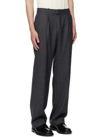 Virgin wool herringbone trousers. · Subtle bootcut · Low-rise · Belt loops · Four-pocket styling · Zip fly · Pleats at front · Corozo hardware Supplier color: Smoke grey micro herringbone Body: 100% virgin wool. Pocket lining: 100% cotton. Made in Portugal 252803M191003