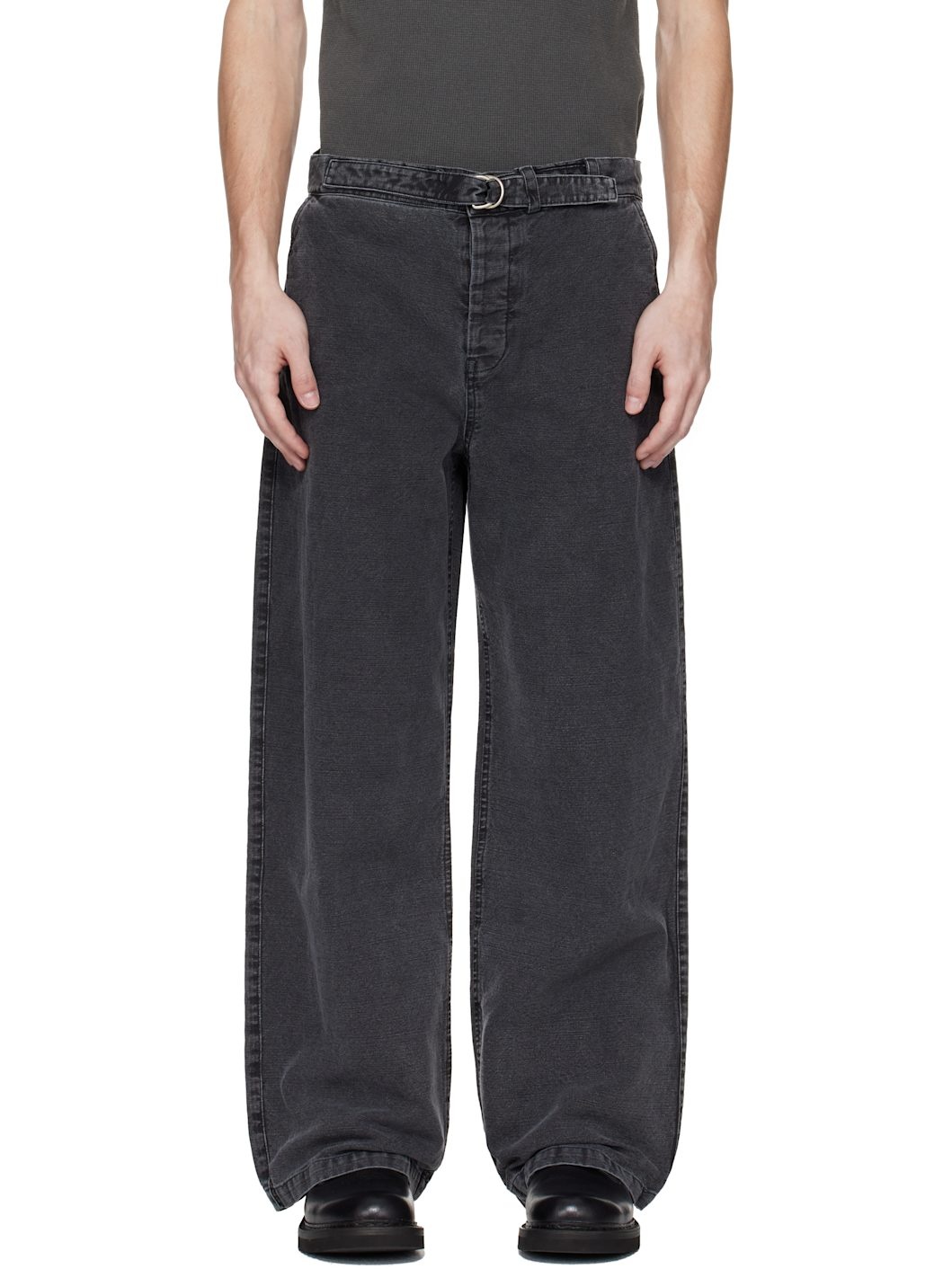 Enzyme-washed cotton- and linen-blend canvas trousers. Fading throughout. · Loose-fit and straight-leg · Belt loops at front waistband · Integrated cinch belt · Three-pocket styling · Button fly Supplier color: Black enzyme canvas Body: 56% cotton, 44% linen. Lining: 100% cotton. Made in Portugal 251803M191002